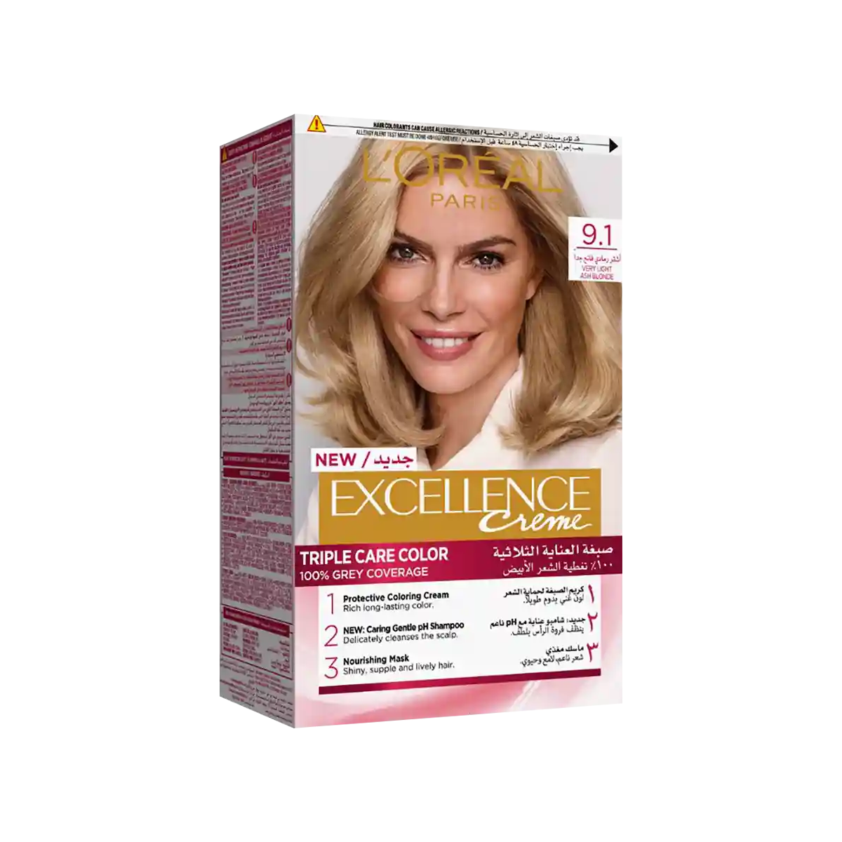 L’Oréal Paris Excellence Creme 9.1 Very Light Ash Blonde is a permanent hair color that gives a cool, light blonde shade with subtle ash tones. The formula provides excellent coverage for gray hair and is enriched with a nourishing system to protect and strengthen hair, leaving it soft, shiny, and vibrant.